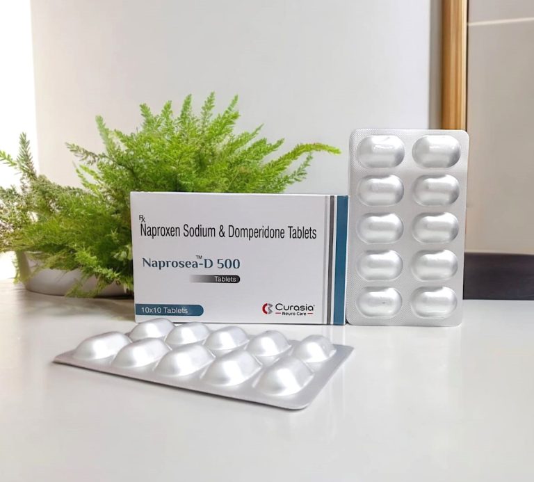 Naproxen 500mg + Domperidone 10mg Tablet Naproxen: Non steroidal anti-inflammatory drug (NSAID) Relieves pain in headache, muscle aches & dental pain Offers excellent therapy for rheumatoid conditions Domperidone: Provides relief from gastric upset due to NSAIDS Relieving symptoms of nausea & vomiting Increases esophageal peristalsis & gastric motility Effective in: Migraine Osteoarthritis … Continue reading NAPROSEA-D 500 TAB