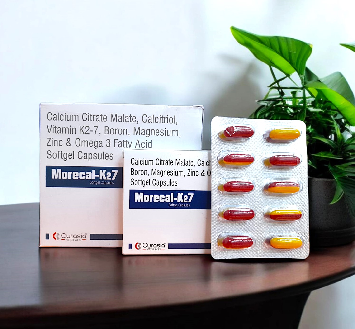 MORECAL K2-7(CALCIUM CITRATE MELATE,CALCITROL,VITAMIN K2-7,BORON,MAGNESIUM,ZINC & OMEGA 3 FATTY ACID SOFTGEL CAPSULES) Calcitriol+Calcium Citrate Malate+Vitamin K2-7+Zinc +Megnisium,+omega 3...